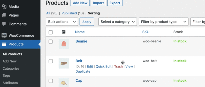 默认的WooCommerce排序是按“菜单顺序”,这意味着手动排序,如果未设置手动产品顺序,产品将按字母顺序显示。在我们继续之前,让我向您展示如何手动对 WooCommerce 产品进行排序,也许这正是您所需要的。转到 WordPress …